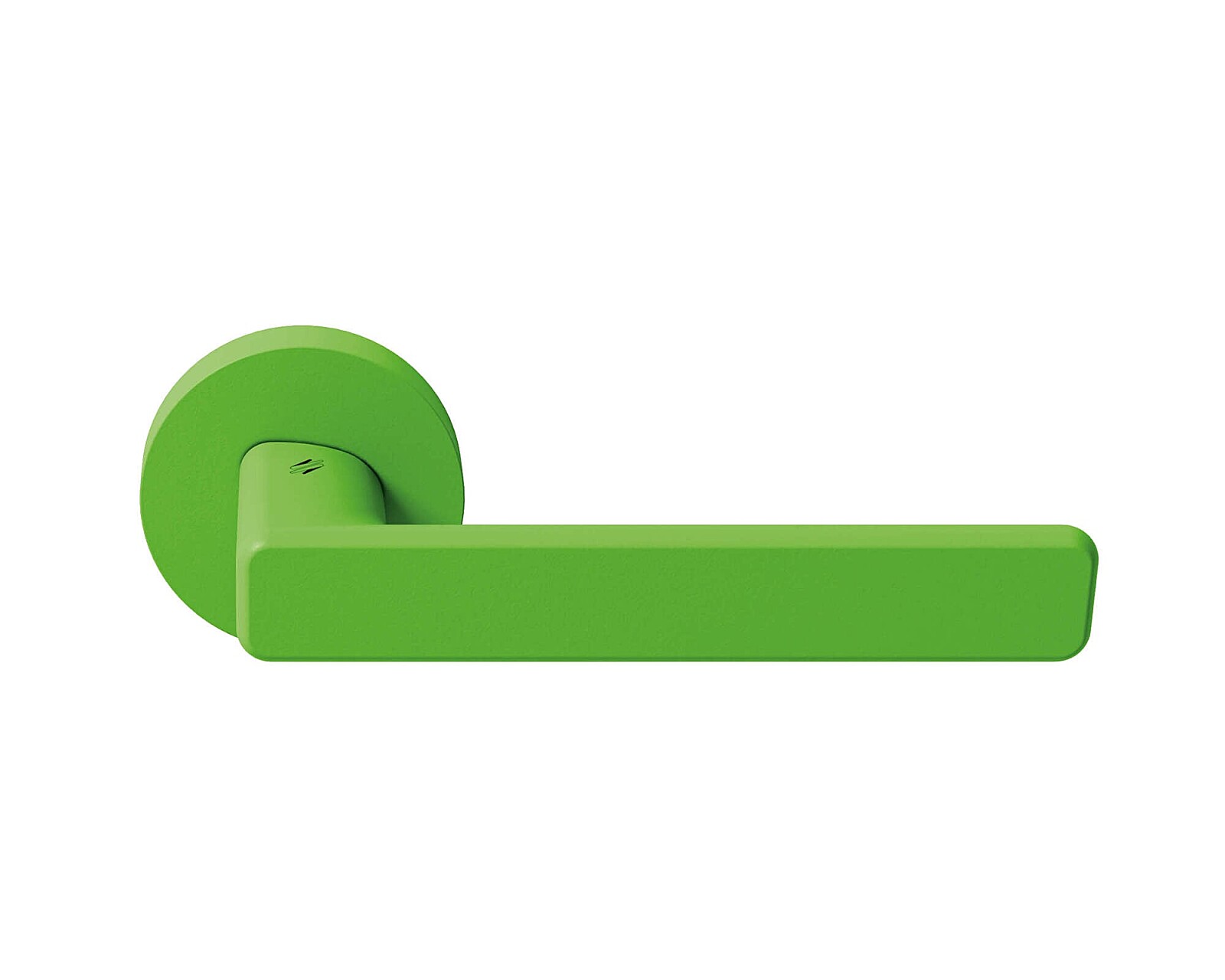 Durch das minimalistische Design der Rosette kommt die markante Farbe des Griffs selbst besonders gut zur Geltung.