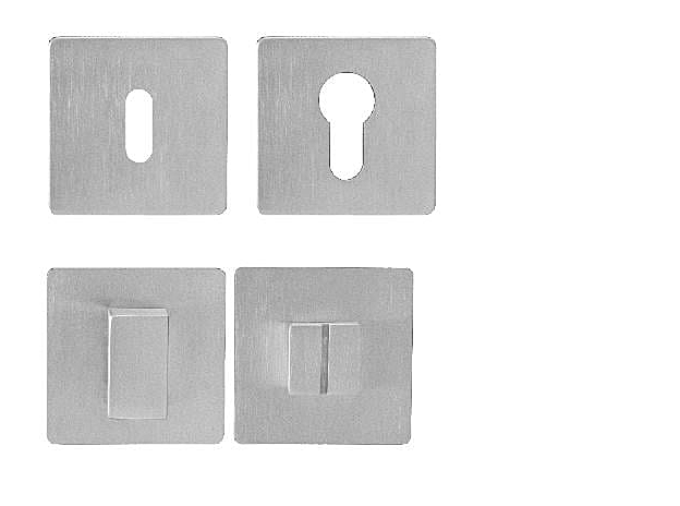 Die Rosette hat die Maße 55 mm x 55 mm, eine Dicke von nur 3 mm und eine ovale Bohrung für einen Innenschlüssel (BB), eine Bohrung für einen Zylindereinsatz (PZ) oder eine WC-Garnitur mit eingebautem Schlüssel.