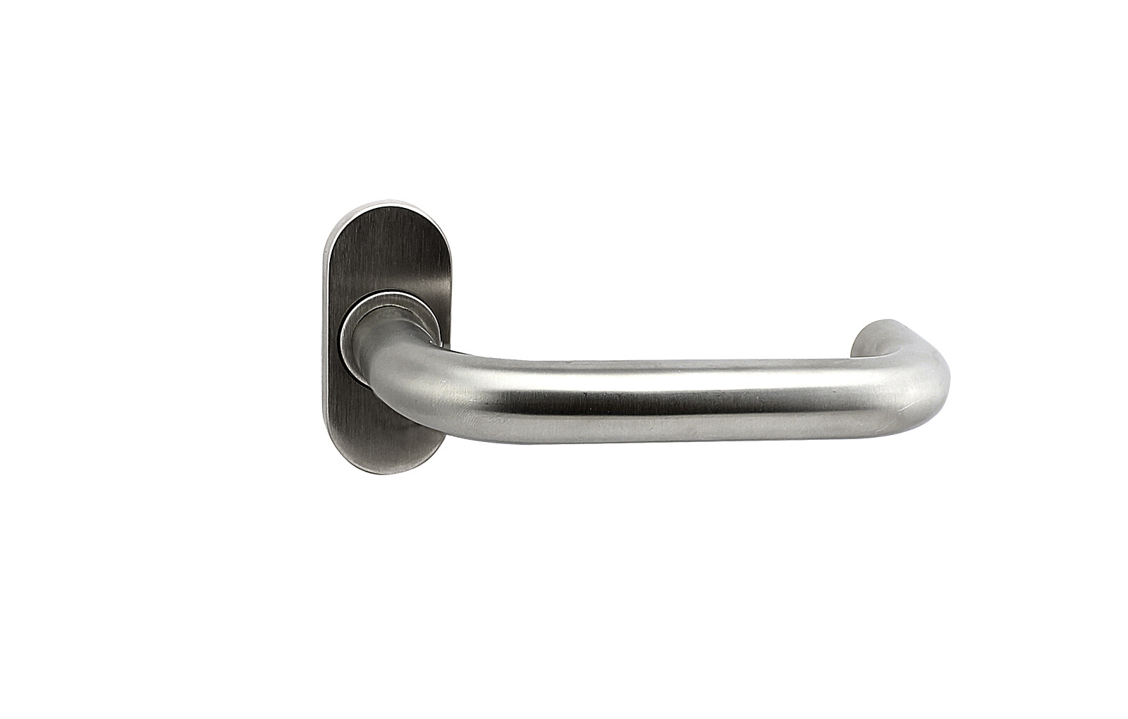 Edelstahlbeschläge auf ovalen Rosetten mit Rückholfeder für den Griff