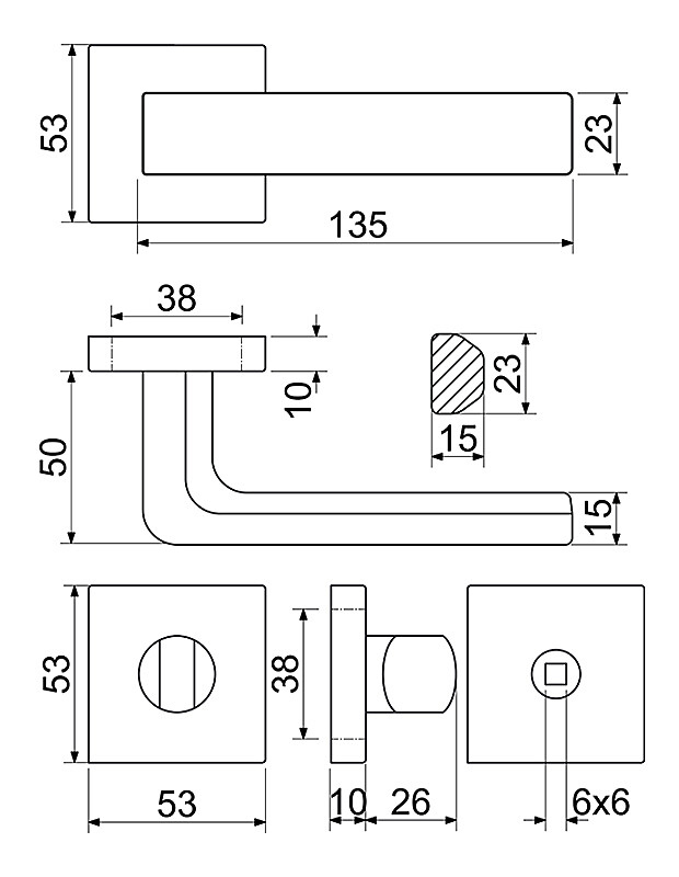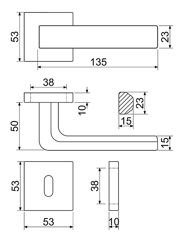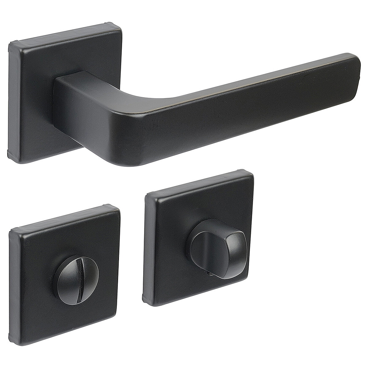 Preisgünstige Stahlbeschläge auf eckigen Rosetten mit Drückerrückholfeder