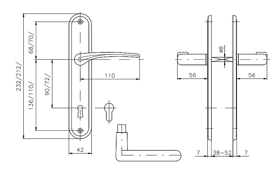 Die WC-Verschlussausführung ist für Türstärken von 38-45 mm einsetzbar.