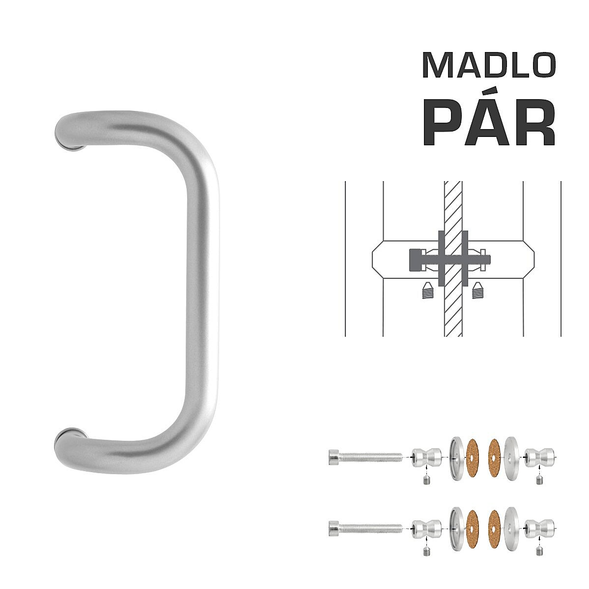 TÜRGRIFF M2 WA/AS-GLAS - Paar (BN - Gebürsteter Edelstahl)