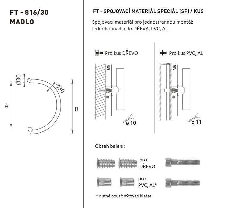 TÜRGRIFF MP Code 816 Ø 30 mm SP - Stück (BS - Mattschwarz)