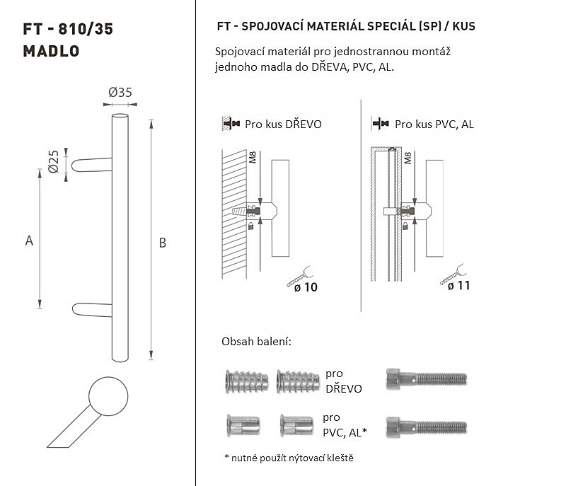 TÜRGRIFF MP Code K10 Ø 35 mm SP - Stück (BS - Mattschwarz)