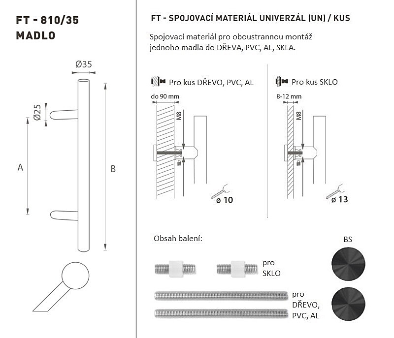 TÜRGRIFF MP Code K10 Ø 35 mm UN - Stück (BS - Mattschwarz)