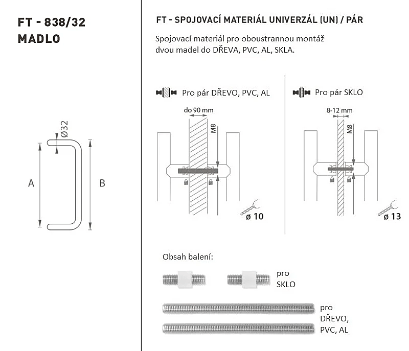 TÜRGRIFF MP Code K38 Ø 32 mm UN - Paar (BS - Mattschwarz)