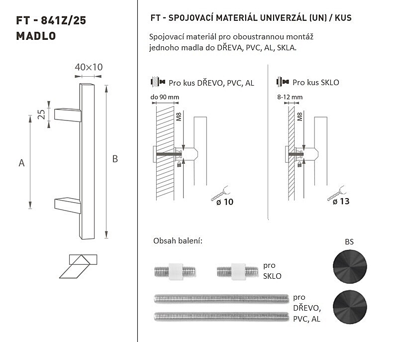 Der Türgriff besteht aus hochwertigem Edelstahl, dem sogenannten Edelstahl, und ist oberflächenbehandelt. Das Griffprofil beträgt 40 x 10 mm. Das Set UNIVERSAL (UN) enthält Befestigungselemente zur beidseitigen Montage eines Griffs aus Holz, PVC, AL, Glas.