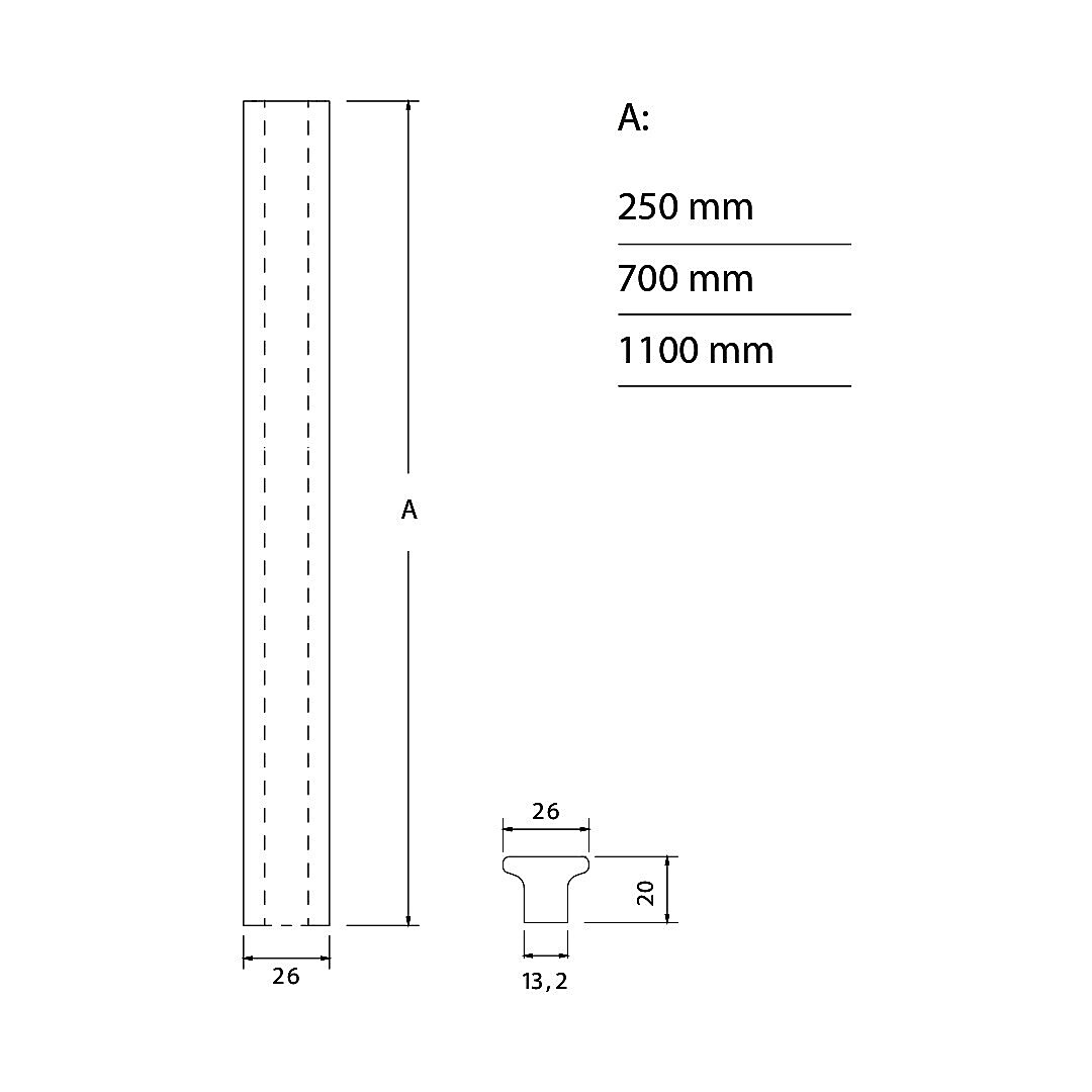 Grifflänge: 250 mm, 700 mm, 1100 mm