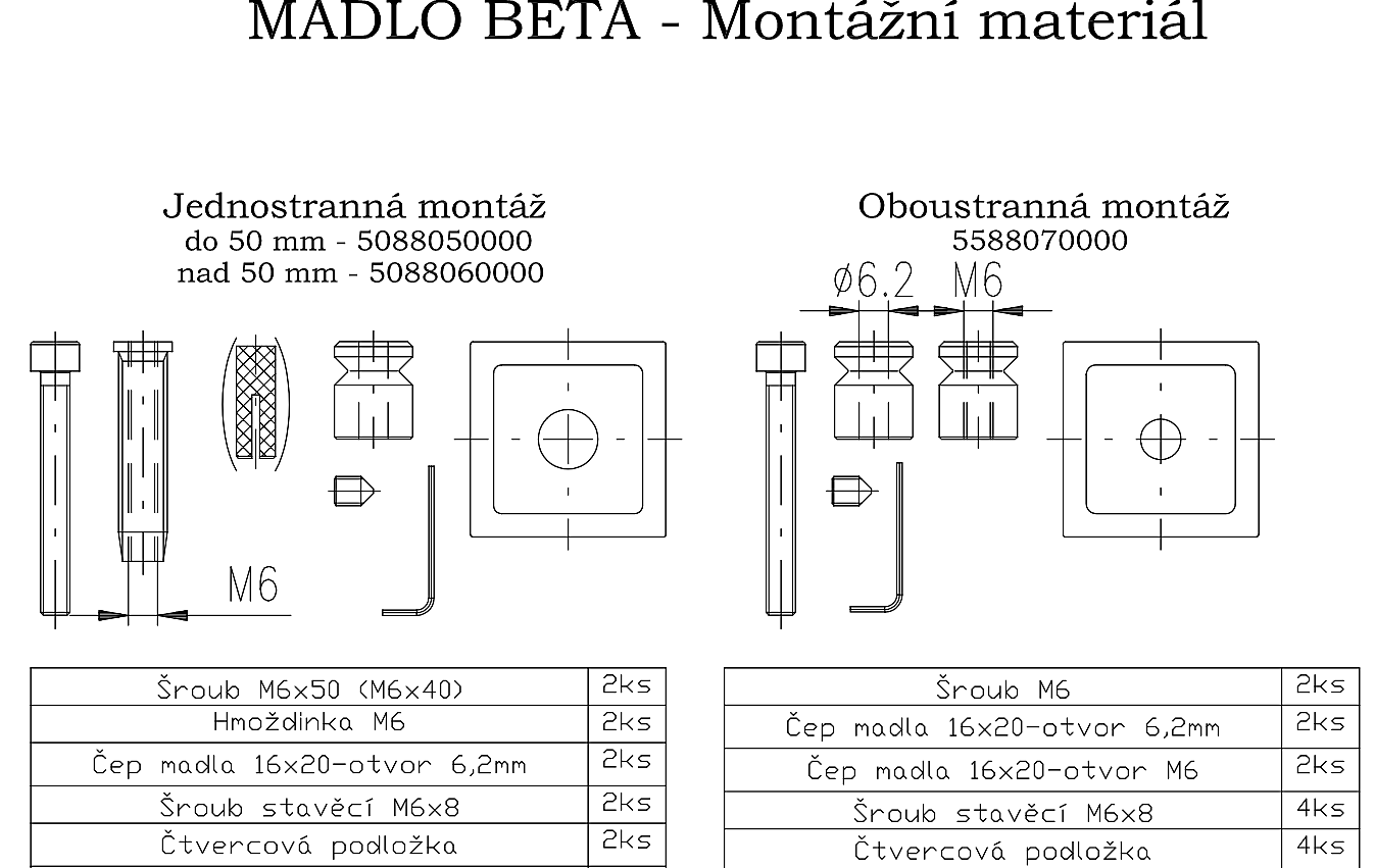 rozteč 830 mm, délka 800 mm - profil Ausführung: |