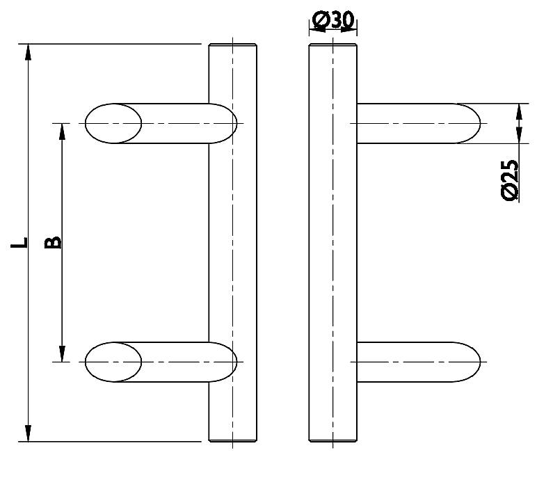 E Abstand 300 mm, ∅ 30 mm, Länge 500 mm Ausführung: |