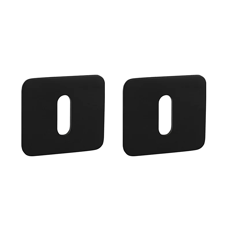 Die Rosette hat die Abmessungen 48 mm x 44 mm, eine Dicke von 2 mm und ein ovales Loch für einen Innenschlüssel (BB), ein Loch für einen Zylindereinsatz (PZ) oder ein WC-Set mit eingebautem Schlüssel.