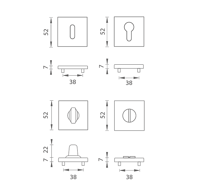 Die quadratische Rosette ist aus hochwertigen Materialien – Zamak – gefertigt und mit einem Oberflächenfinish versehen.