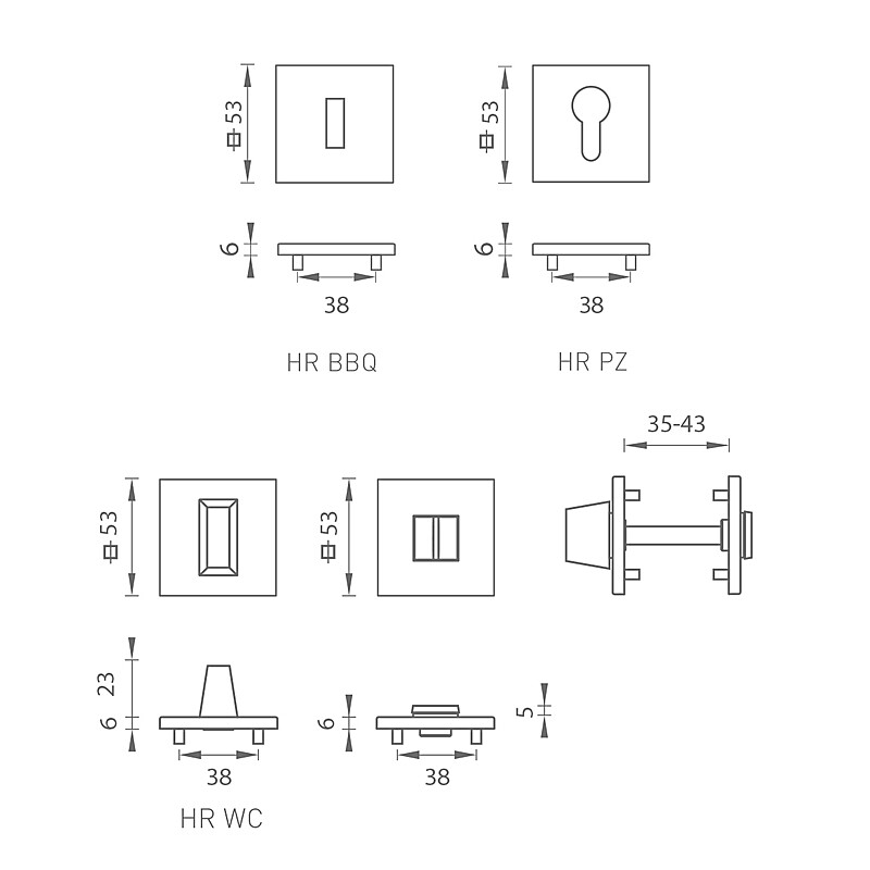 | Lochtyp - Variante | Loch für Zylindereinsatz PZ, Loch für normalen BB-Schlüssel, WC-Schlüssel |