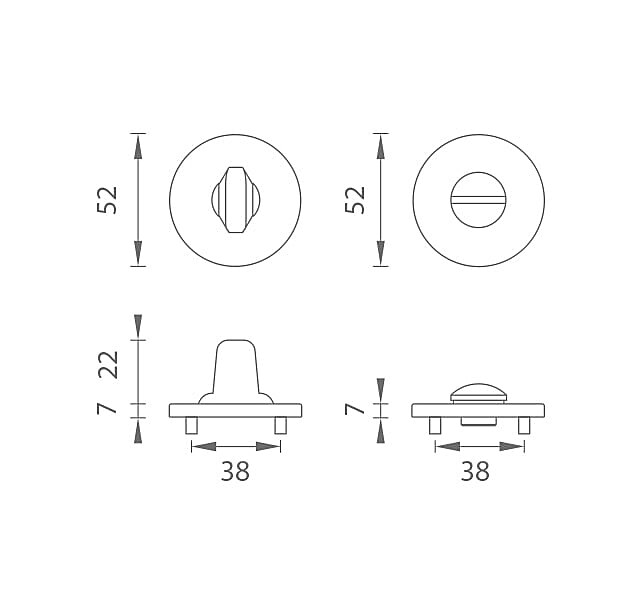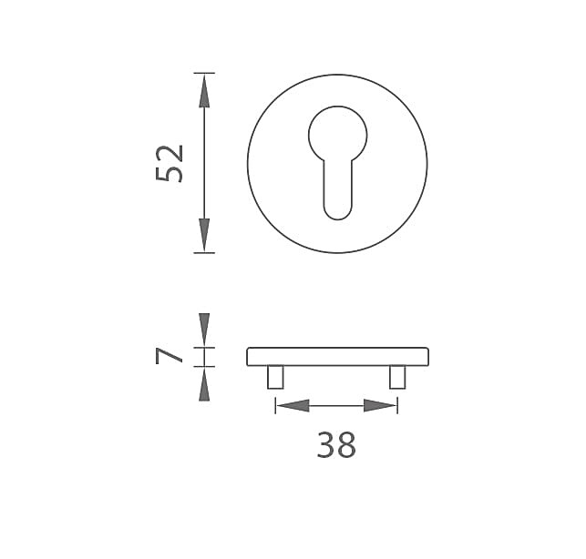Die runde Rosette besteht aus hochwertigen Materialien - Zamak und ist oberflächenbehandelt. Die Rosette hat einen Durchmesser von 52 mm, eine Dicke von 7 mm und ein ovales Loch für einen Innenschlüssel (BB), ein Loch für einen Zylindereinsatz (PZ), eine Toilettengarnitur mit eingebautem Schlüssel. Die Packung enthält 2 Stück Rosetten (ein Paar) und die Toilettenrosetten sind als Set in der Packung enthalten.