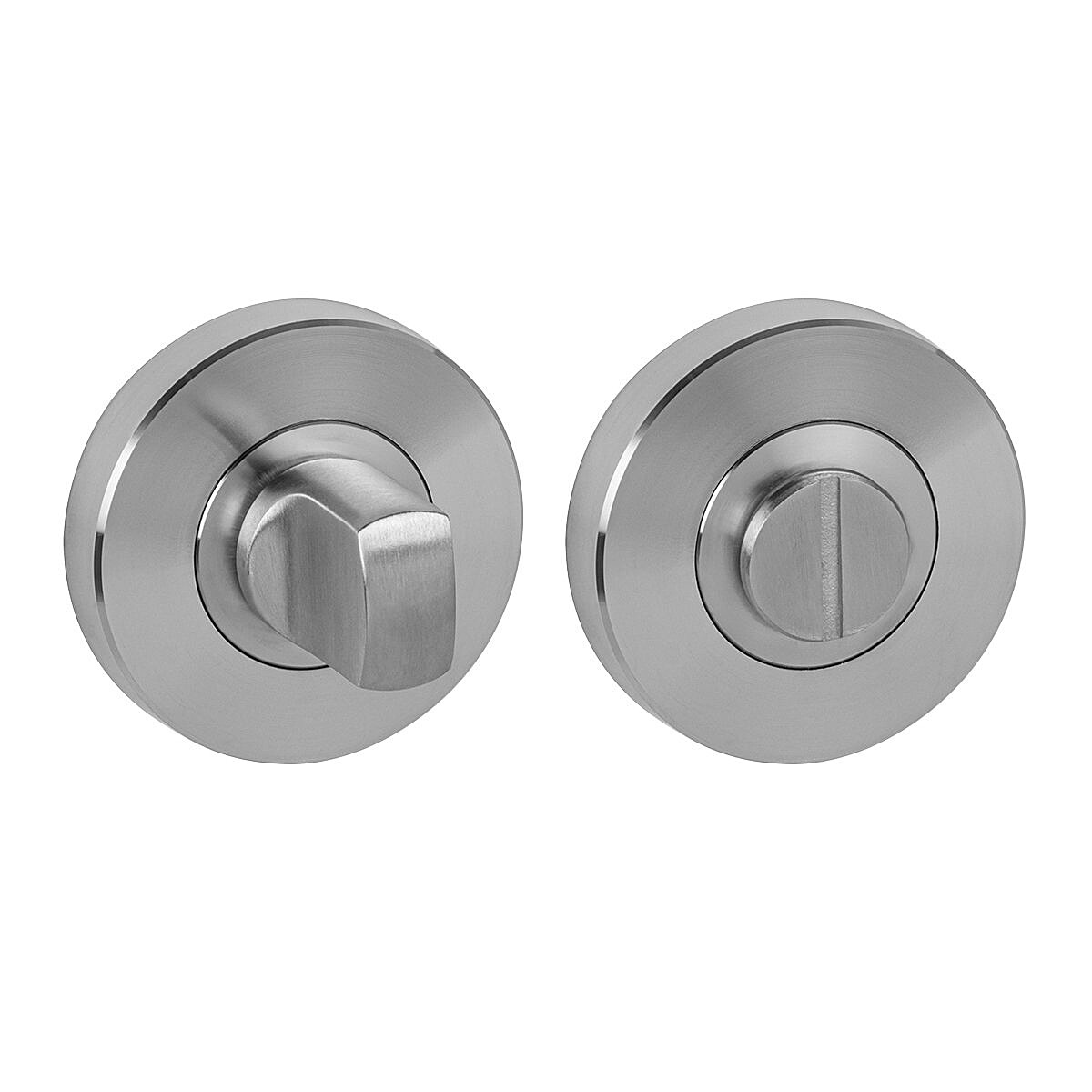 Die runde Rosette besteht aus hochwertigem Edelstahl, bekannt als Edelstahl, und ist oberflächenbehandelt. Die Oberfläche wird mit hochwertiger Galvaniktechnik aufgebracht, auf die eine erweiterte 10-Jahres-Garantie gewährt wird. Die Abdeckrosetten werden mit einem Innengewinde ohne sichtbare Fugen befestigt, was eine extrem starke Verbindung und eine reibungslose Haftung auf der Türoberfläche garantiert.