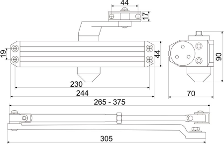 - Stufenlos einstellbare Schließkraft 1-6 gemäß EN1154.