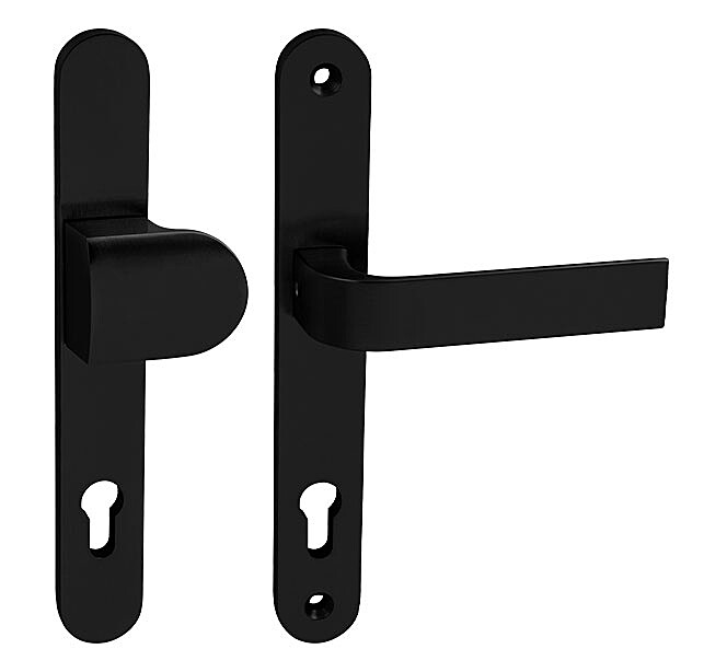 Die Montage der Sicherheitsbeschläge erfolgt mit langen Schrauben von innen. Von außen kann es sich um eine Kugel, einen Griff oder einen Griff mit Schutzschild gegen Aufbohren und Brechen des Schildes handeln. Einige Typen verfügen über eine Schutzkappe, die eine ungewollte Handhabung des Einsatzes verhindert.