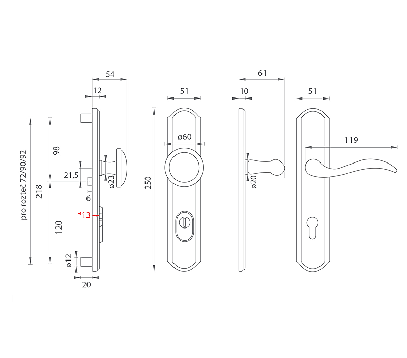 | Typ von Türbeschlägen – Variante | Clique-Clique, koule/klika levá, koule/klika pravá |