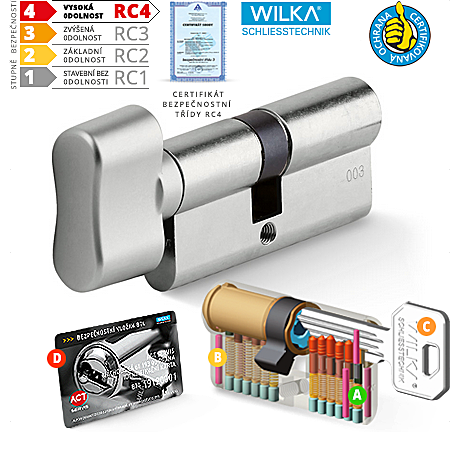 Zylindrischer Sicherheitszylinder mit Knauf ACT WILKA RC4, geschütztes Profil (Nickel)
